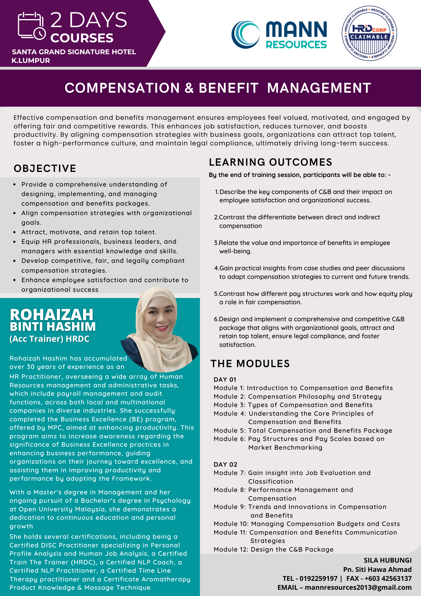 COMPENSATION AND BENEFIT MANAGEMENT (26-27 JULY 2025)COMPENSATION AND BENEFIT MANAGEMENT (26-27 JULY 2025)